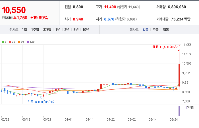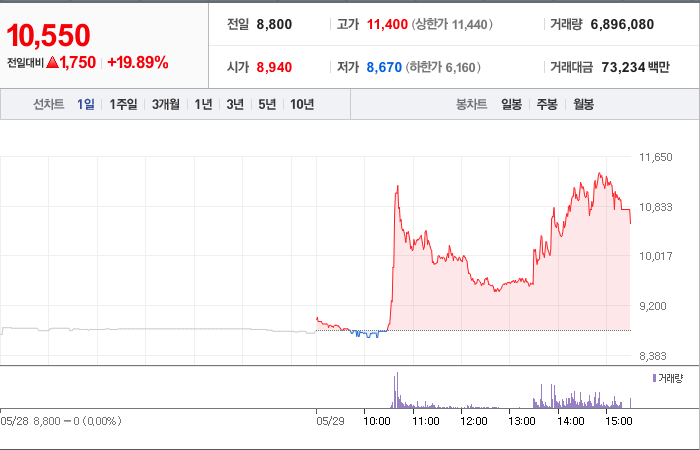 현재가: 10,550, 어제대비:+상승