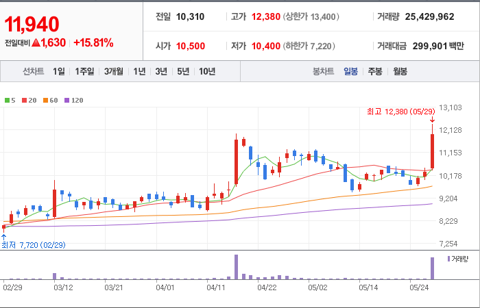 현재가: 11,940, 어제대비:+상승