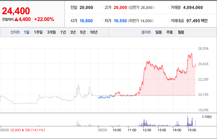 현재가: 24,400, 어제대비:+상승
