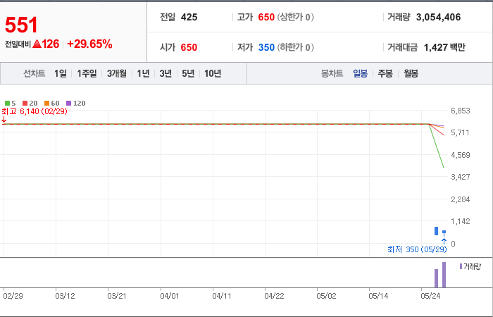 현재가: 551, 어제대비:+상승