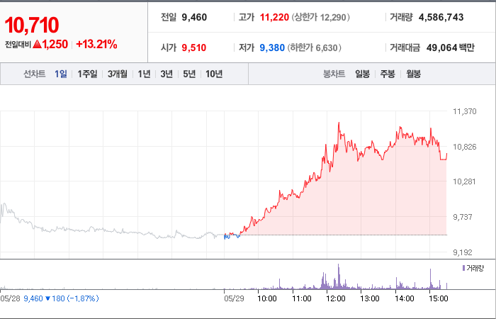 11,300시총: 1조 3,713억원, 거래량:5,444,909, 거래대금:322,716백만