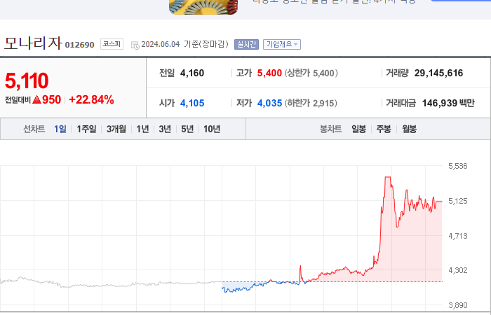 4. 모나리자 등락률: +22.84%