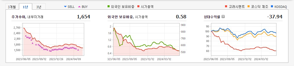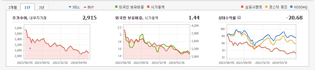 2023년 12월 전년동기 대비 별도기준 매출액은 27.7% 감소, 영업손실은 36.3% 증가, 당기순손실은 104.1% 증가. 당기 중 장성공장 생산 중단 및 목포공장 이전으로 일시적으로 매출 감소 했으나, 2024년에는 목포공장 증설효과로 매출이 증가할 것으로 예상됨. 영업손실은 목포공장 이전으로 인한 매출 감소 및 유연탄 등 원부재료 원가상승으로 전년대비 45억원 감소한 -158억원을 시현했음.