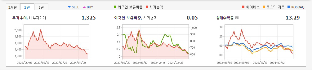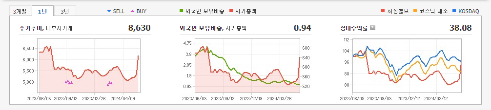 2023년 12월 전년동기 대비 별도기준 매출액은 66.5% 감소, 영업이익 적자전환, 당기순이익 적자전환. 동사는 최근 지속적인 연구개발 투자 및 인증을 통한 제품 경쟁력 강화로 수익성 개선 기대감으로 장기 바닥권에서 주가가 상승전환을 시도함. 내년 하반기부터는 유럽 및 기타지역에서 제품을 출시할 것으로 추정되며, 2025년 상반기에는 북미 시장 출시가 기대됨.