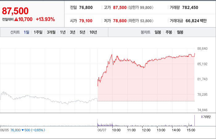 현재가: 87,500, 어제대비:+상승