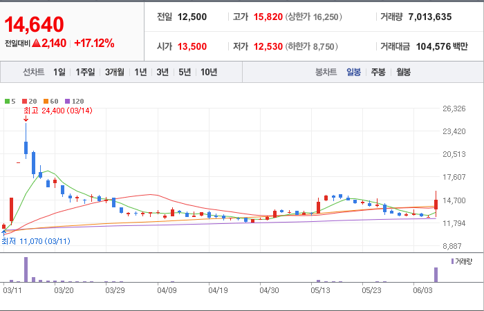 현재가: 14,640, 어제대비:+상승