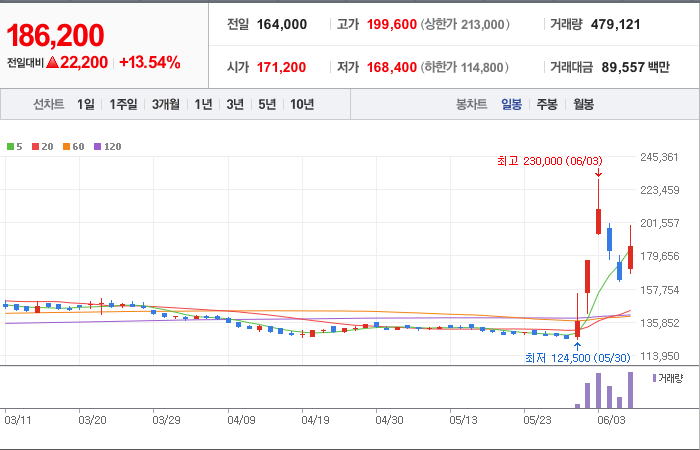 현재가: 186,200, 어제대비:+상승