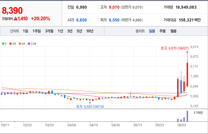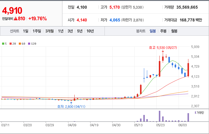 5,550시총: 1조 765억원, 거래량:5,259,371, 거래대금:208,493백만
