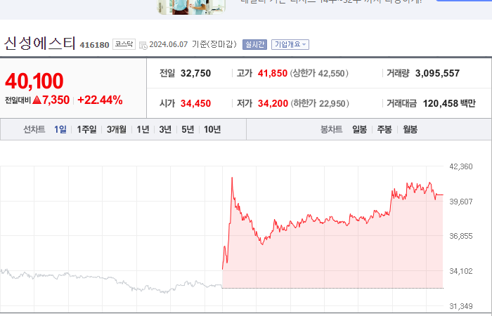 현재가: 40,100, 어제대비:+상승