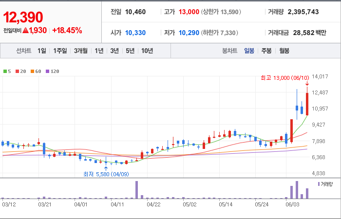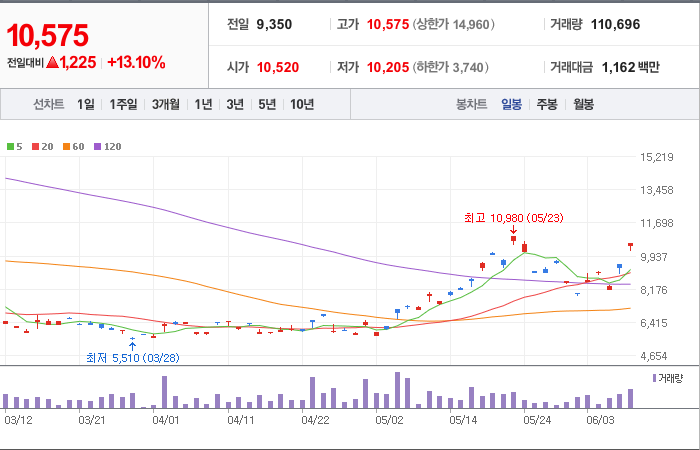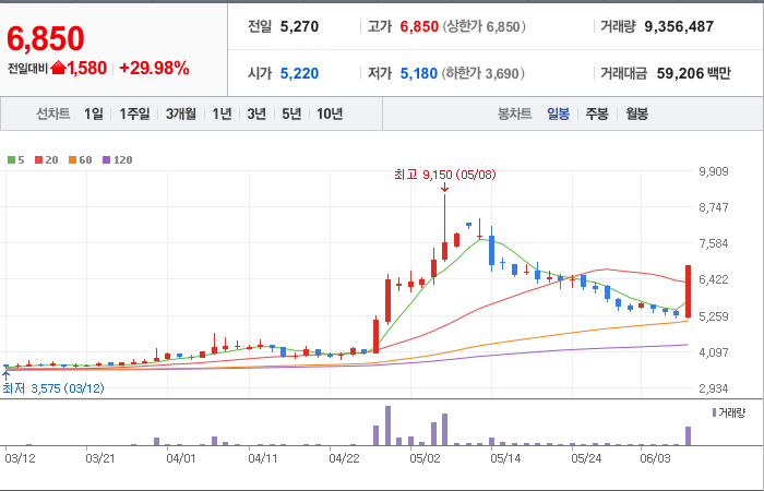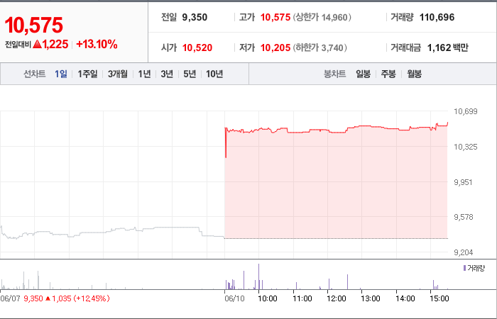 9,700시총: 1조 179억원, 거래량:4,138,398, 거래대금:205,215백만