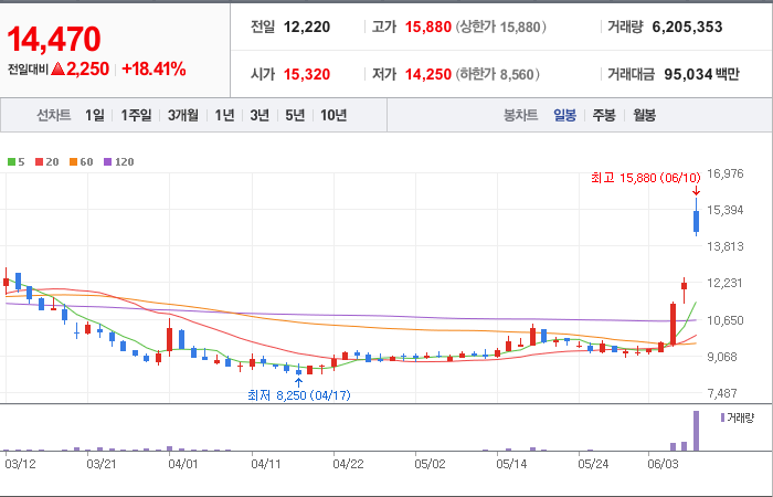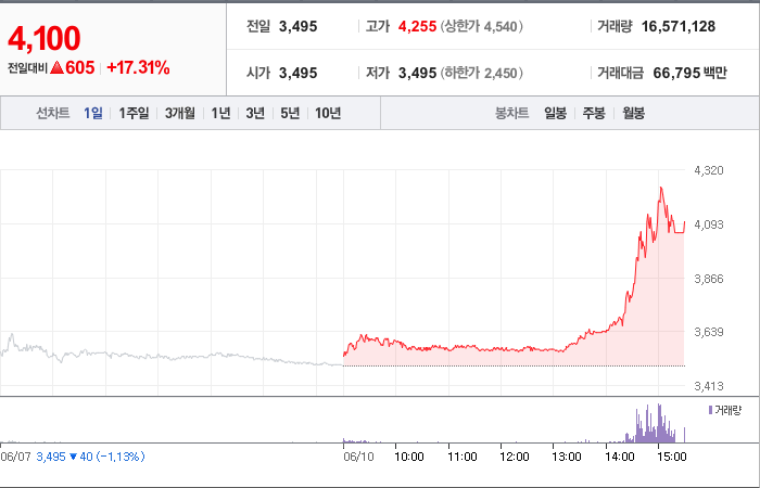 605시총: 2,014억원, 거래량:16,571,128, 거래대금:66,795백만