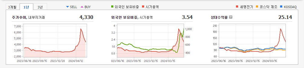 2023년 12월 전년동기 대비 별도기준 매출액은 44.8% 증가, 영업이익 흑자전환, 당기순이익 흑자전환. 정부의 신규 원전건설 재개에 따른 수주증가와 주요 매출처인 한전의 전기요금 정상화에 따른 국내 전력시장 경영환경이 안정화된 영향으로 매출이 크게 늘어남. 판관비 감소로 영업이익 흑자전환 성공. 기존 전력기자재 분야의 영업확대를 적극적으로 추진하여 매출증대 와 이윤 창출 기대감 커지는 중.