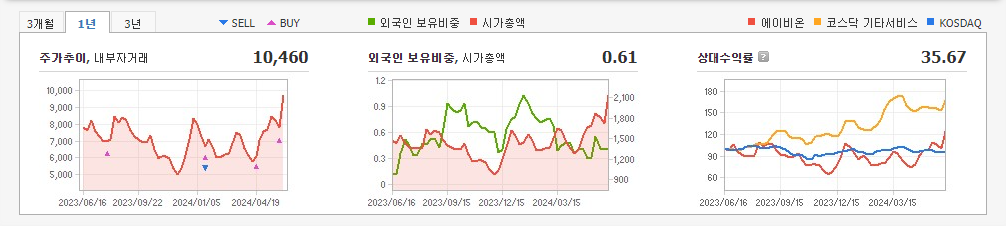 2023년 12월 전년동기 대비 연결기준 매출액은 49.2% 감소, 영업손실은 24.2% 증가, 당기순손실은 46.6% 증가. 매출이 줄고 판매비와 관리비는 전년 대비 오히려 늘면서 영업손실 규모 역시 전년 대비 커졌음. 고형암 치료제 ABN401 2023년 1월 임상2상 코호트 1 첫 환자에 투약, 임상 2상은 2023년 10월 AACR-NCI-EORTC 학회에서 중간 컷오프 결과를 발표했음.