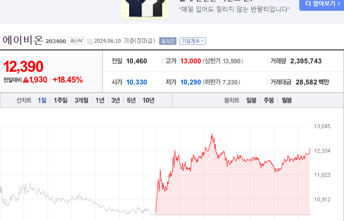 17. 에이비온 등락률: +18.45%