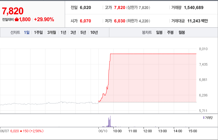 1,800시총: 2,277억원, 거래량:1,540,689, 거래대금:11,243백만