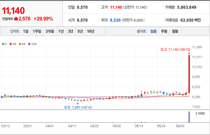 62,500시총: 3조 2,116억원, 거래량:127,833, 거래대금:65,957백만