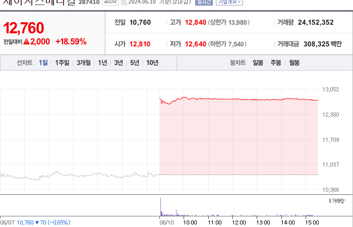 2024.06.10 15:41 / 제이시스메디칼, 佛 투자회사 공개매수에 급등…매수가 근접(종합)-연합뉴스 / https://n.news.naver.com/mnews/article/001/0014737758