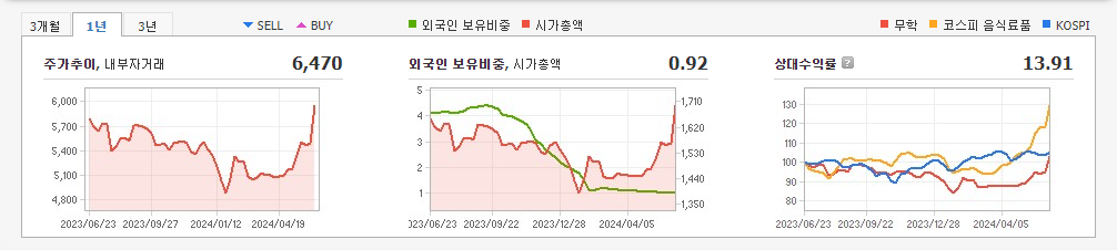 2024년 3월 전년동기 대비 연결기준 매출액은 7% 감소, 영업이익은 21.6% 감소, 당기순이익은 15.7% 감소. 2023년 12월 경상남도 및 양산시와 1,360억원 규모의 투자협약(MOU)을 체결하여 건강기능식품 및 HMR(가정간편식) 시장의 꾸준한 성장과 더불어 관련 시장을 적극 공략 중. 비건 및 할랄시장에 진출하기 위한 신규수요창출을 위해 신규 사업장을 신설할 예정.