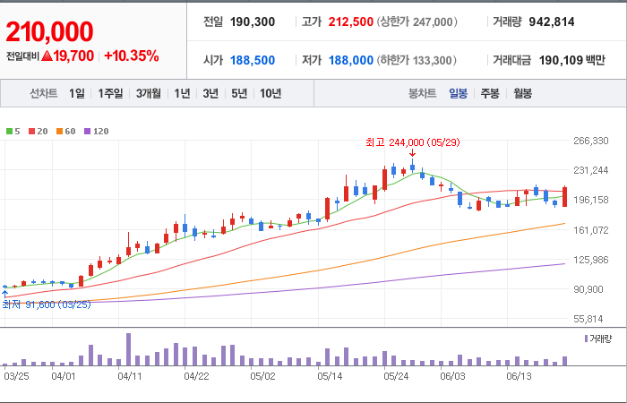 현재가: 210,000, 어제대비:+상승