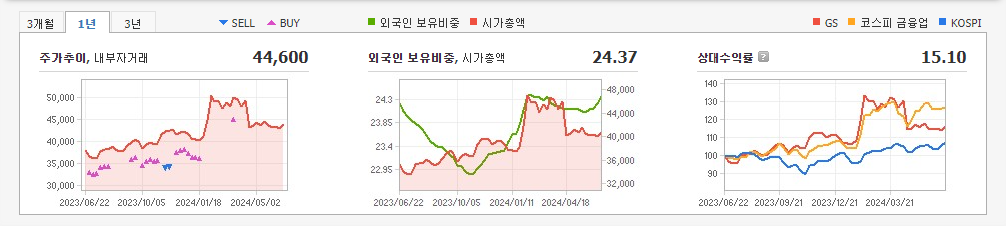 2024년 3월 전년동기 대비 연결기준 매출액은 7.6% 감소, 영업이익은 5.8% 감소, 당기순이익은 8.4% 감소. 동사의 실적 감소의 가장 큰 원인은 GS칼텍스의 실적 감소이며, 정유부문의 경우 2022년도 급등했던 유가 및 정제마진이 진정세를 보이며 이익이 감소하였음. 기존 사업의 안정적인 현금창출 능력을 바탕으로 리사이클, 전기차, 배터리, 친환경 등을 핵심 성장사업군으로 선정해 역량을 확대하고 있음.