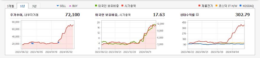 2024년 3월 전년동기 대비 별도기준 매출액은 113.8% 증가, 영업이익은 201.8% 증가, 당기순이익은 188.1% 증가. 지속성장을 위해 납기안정성 제고 및 CAPA 확대를 추진하였으며 고마진 중심의 선별수주 등을 통하여 매출실적 및 영업이익을 크게 개선하였음. 2024년도에도 국내시장은 좋지 않을 것으로 예상되어 고마진 중심 선별 수주를 실시할 예정이며, 미국 변압기 수출 환경 호조로 전년대비 영업실적 개선이 예상됨.