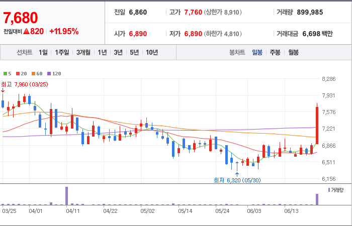 현재가: 7,680, 어제대비:+상승