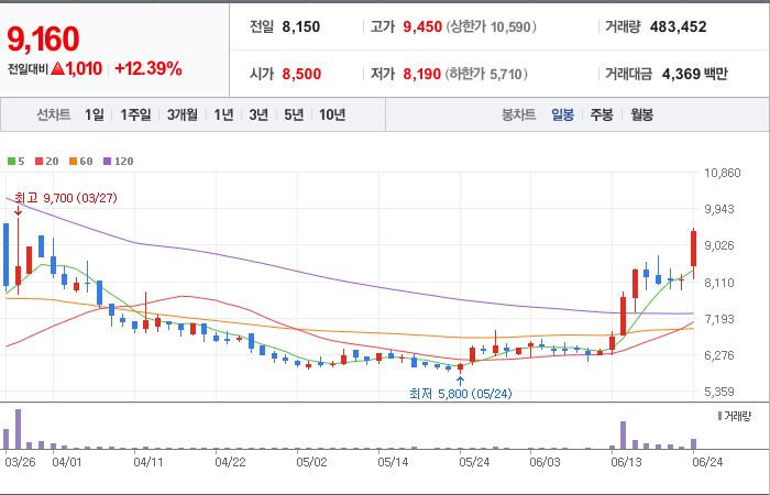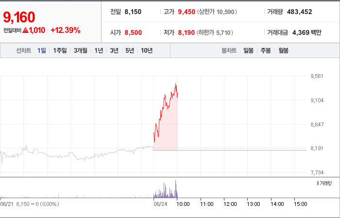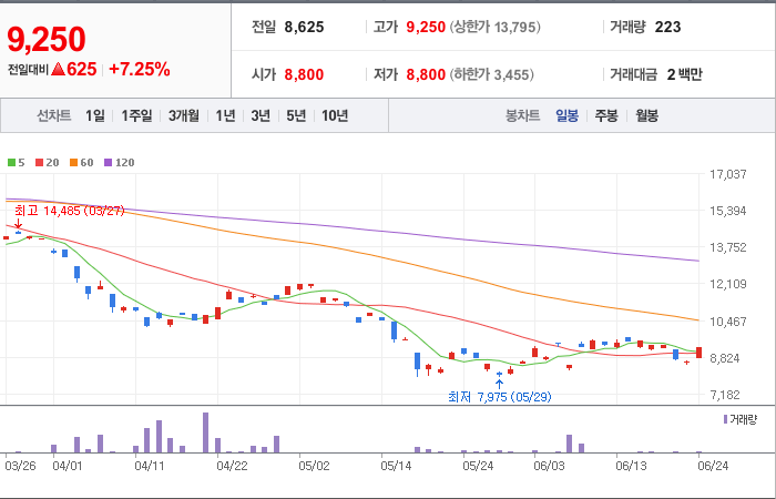 현재가: 9,250, 어제대비:+상승