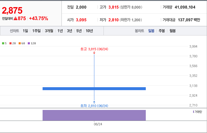현재가: 3,810, 어제대비:+상승