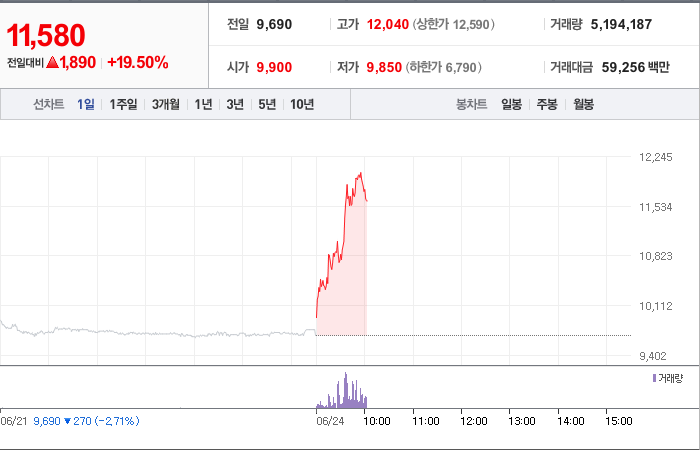 11,650시총: 3,614억원, 거래량:4,598,940, 거래대금:199,221백만