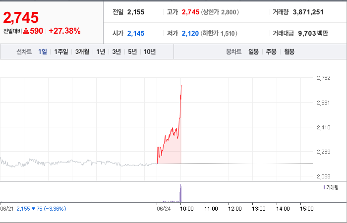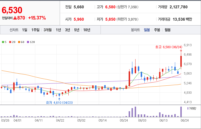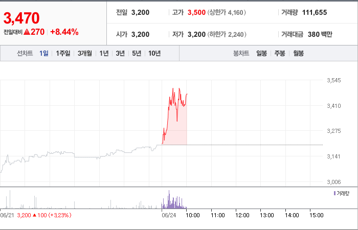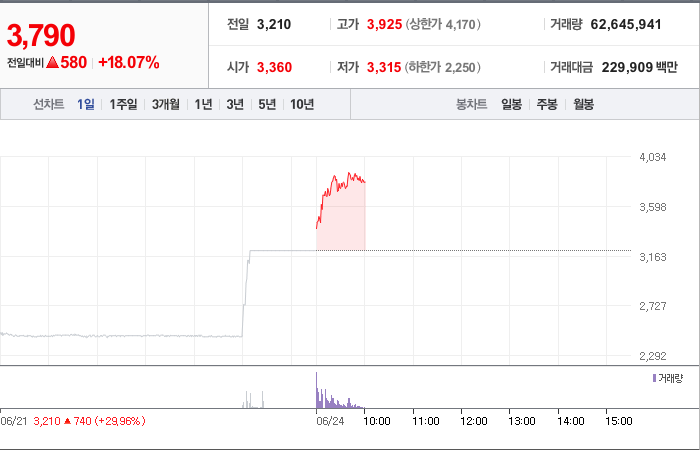 600시총: 3,145억원, 거래량:61,807,049, 거래대금:226,740백만