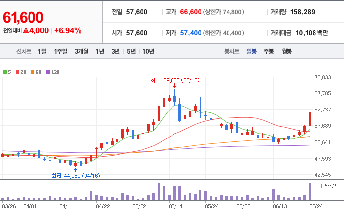 현재가: 61,900, 어제대비:+상승