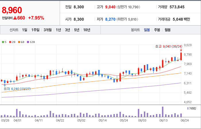 현재가: 8,900, 어제대비:+상승