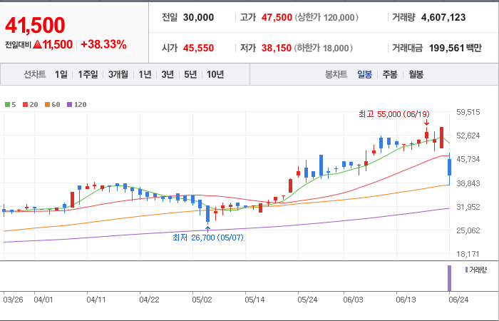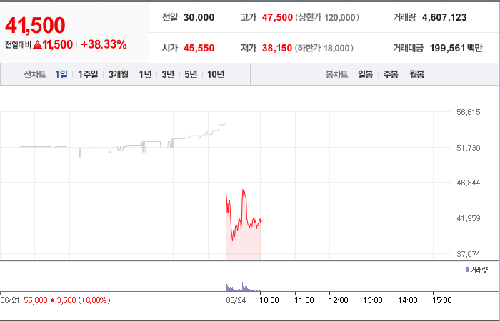 현재가: 41,650, 어제대비:+상승