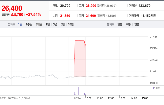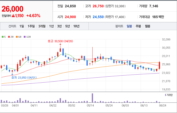 현재가: 26,500, 어제대비:+상승