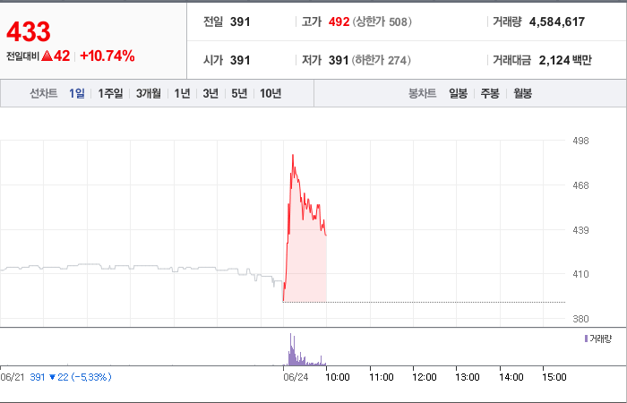 47시총: 259억원, 거래량:4,558,843, 거래대금:2,113백만
