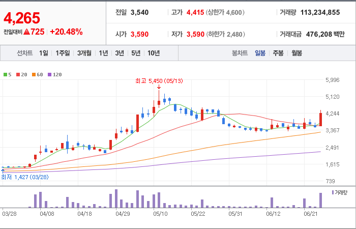 4,200시총: 5,239억원, 거래량:3,458,818, 거래대금:89,340백만