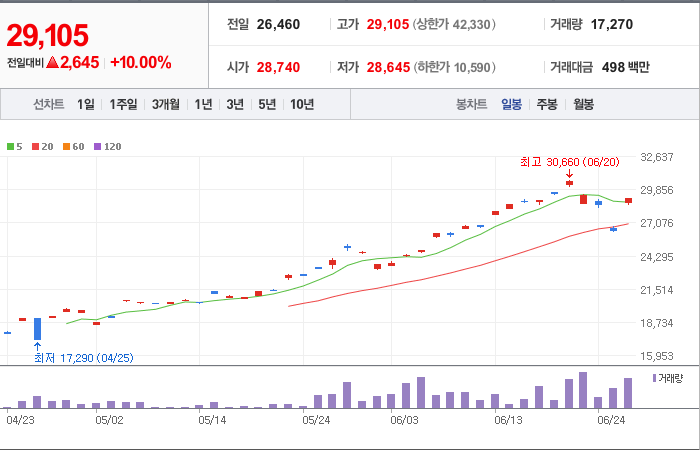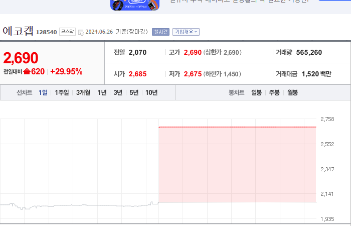2,645시총: 291억원, 거래량:17,270, 거래대금:498백만