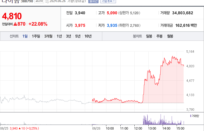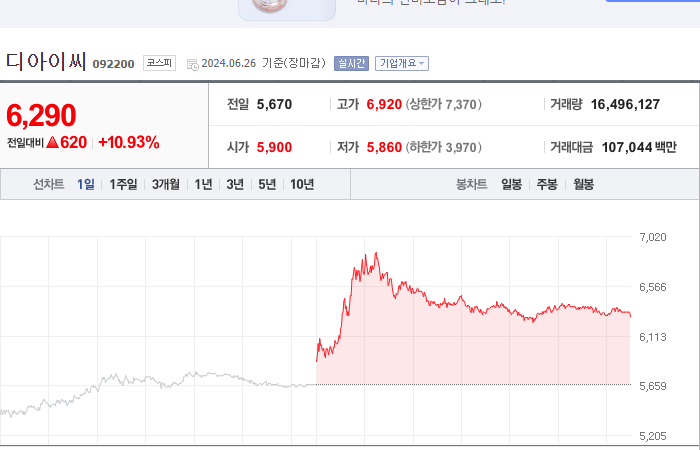 620시총: 2,446억원, 거래량:16,496,127, 거래대금:107,044백만