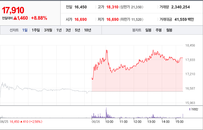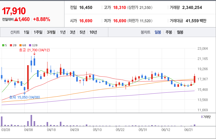 17,000시총: 9,094억원, 거래량:2,863,996, 거래대금:209,473백만