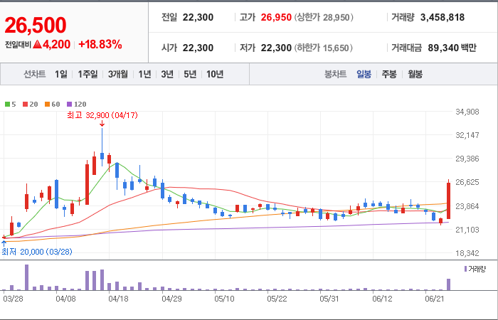 800시총: 158억원, 거래량:4,932,674, 거래대금:31,707백만