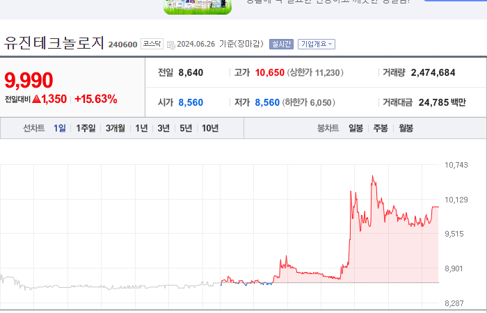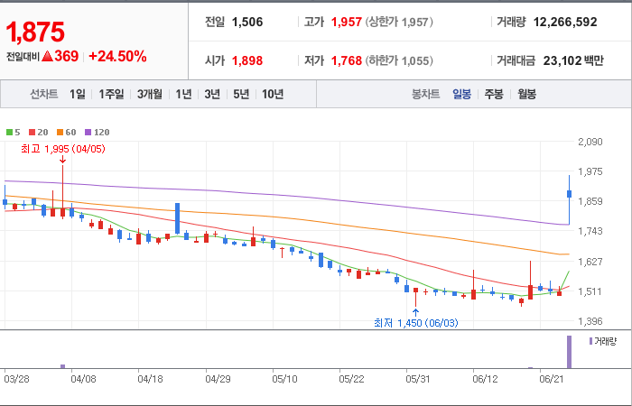 1,350시총: 692억원, 거래량:2,474,684, 거래대금:24,785백만