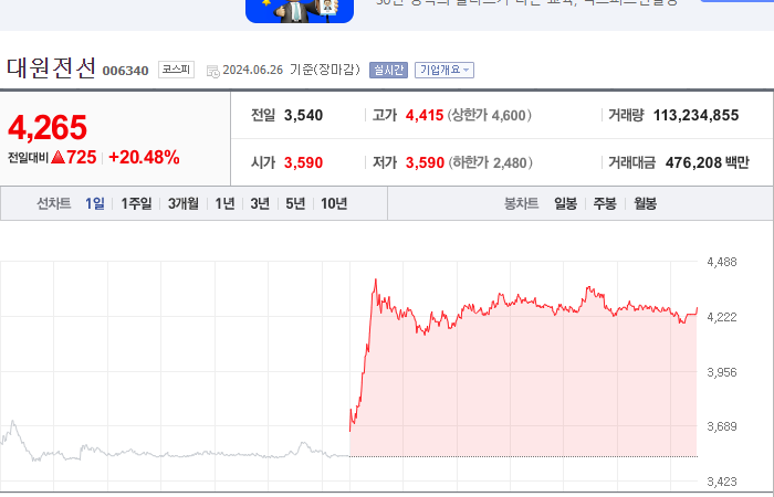 2024.06.26 16:26 / 대원전선, 美 변압기 수주 기대감 주가 20% 급등 [투자360]-헤럴드경제 / https://n.news.naver.com/mnews/article/016/0002327393
