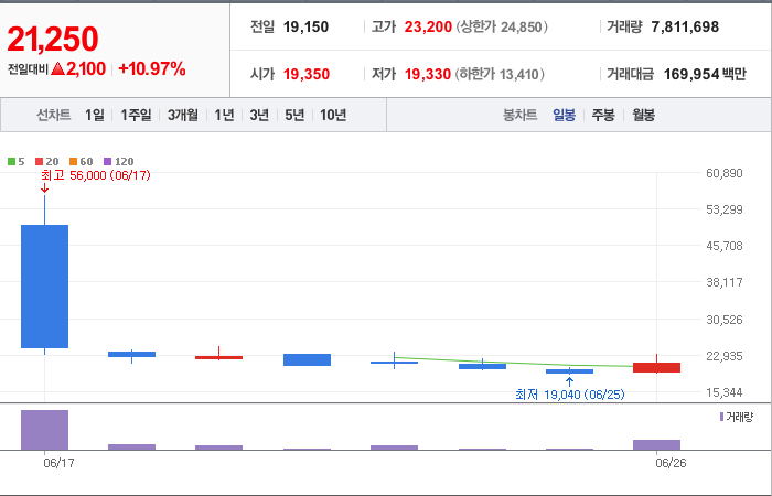 725시총: 3,198억원, 거래량:113,234,855, 거래대금:476,208백만