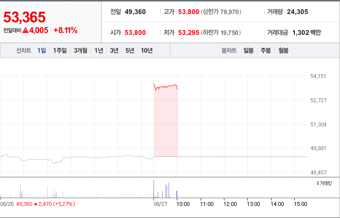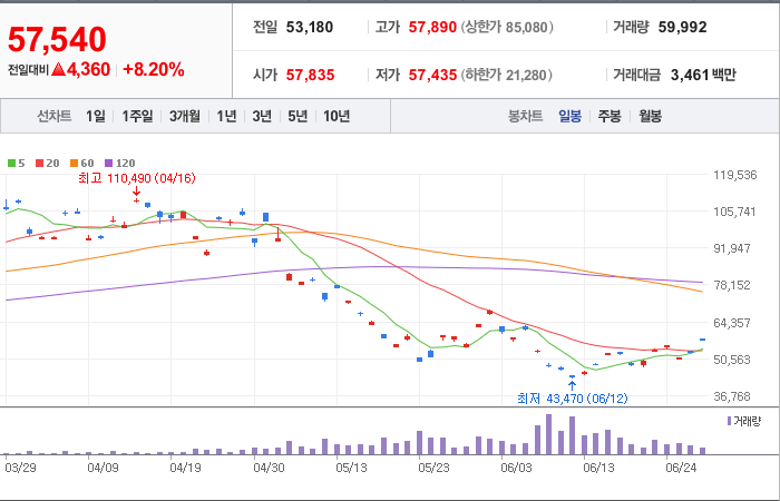 7,350시총: 4조 3,561억원, 거래량:1,380,335, 거래대금:77,378백만