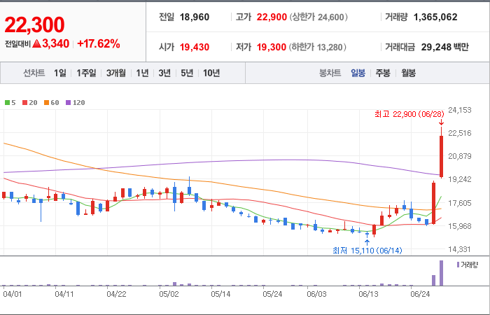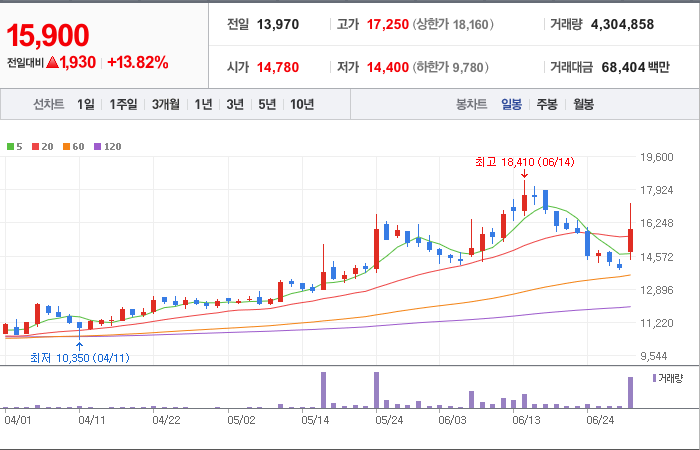 19,500시총: 4조 8,400억원, 거래량:419,825, 거래대금:89,068백만