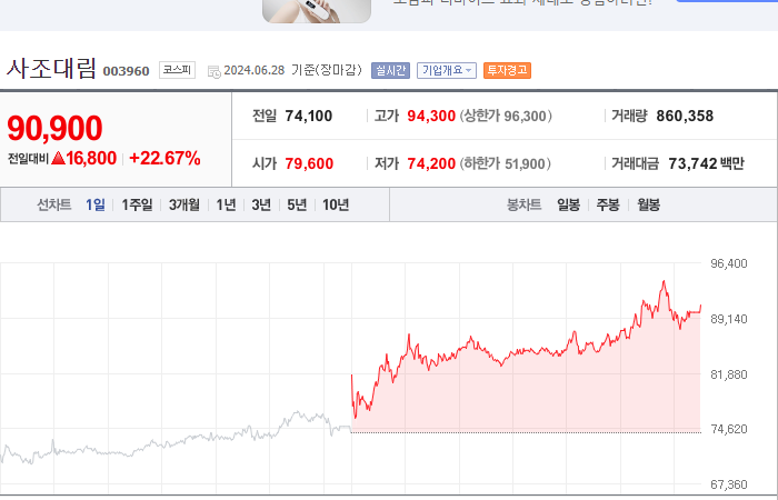 2024.06.28 14:36 / [특징주]냉동김밥 수출 개시…사조대림, 52주 신고가-이데일리 / https://n.news.naver.com/mnews/article/018/0005775863