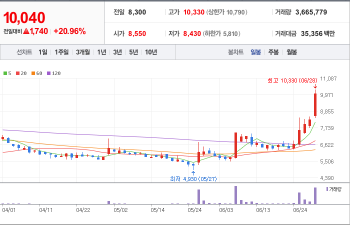 1,120시총: 363억원, 거래량:3,687,173, 거래대금:27,973백만