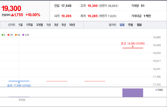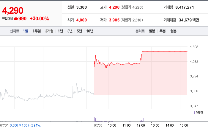4,875시총: 734억원, 거래량:33, 거래대금:2백만
