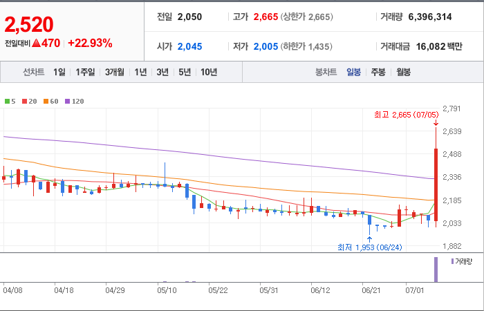 2,720시총: 5,796억원, 거래량:16,786,873, 거래대금:300,219백만