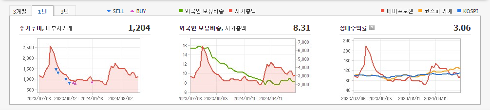2024년 3월 전년동기 대비 연결기준 매출액은 10.6% 감소, 영업손실은 4.5% 감소, 당기순이익 적자전환. 연구개발비가 전년동기 119.9억에서 51.6억으로 57.0% 감소함에 따라 판관비가 36.6% 감소하였고 이에 영업손실 감소함. 모회사이자 바이오신약 및 바이오시밀러 개발 회사인 에이프로젠과 지속적 연구개발 협력을 통해 바이오시밀러의약품 생산 및 상업화를 진행 중임.